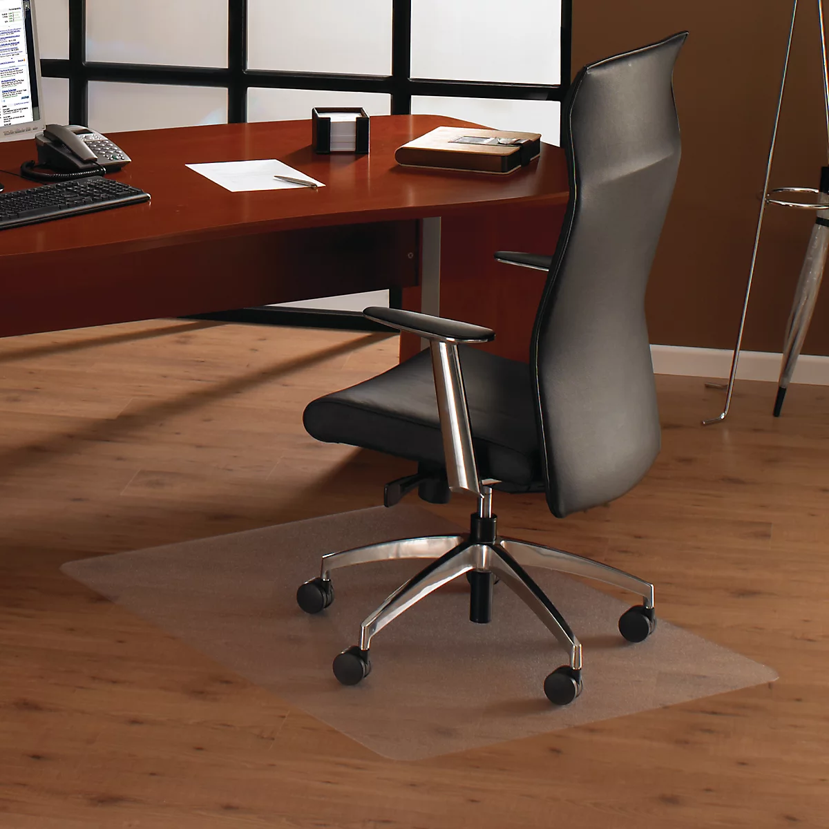 Hergestellt aus Original-Floortex-Polycarbonat: ein außergewöhnlich strapazierfähiges und kristallklares Material, das nicht reißt, aufrollt, vergilbt oder riecht. Hoch ergonomisch aufrund minimalen Rollwiderstands bei Stuhlrollen. Frei von toxischen Chemikalien und 100% recyclingfähig.