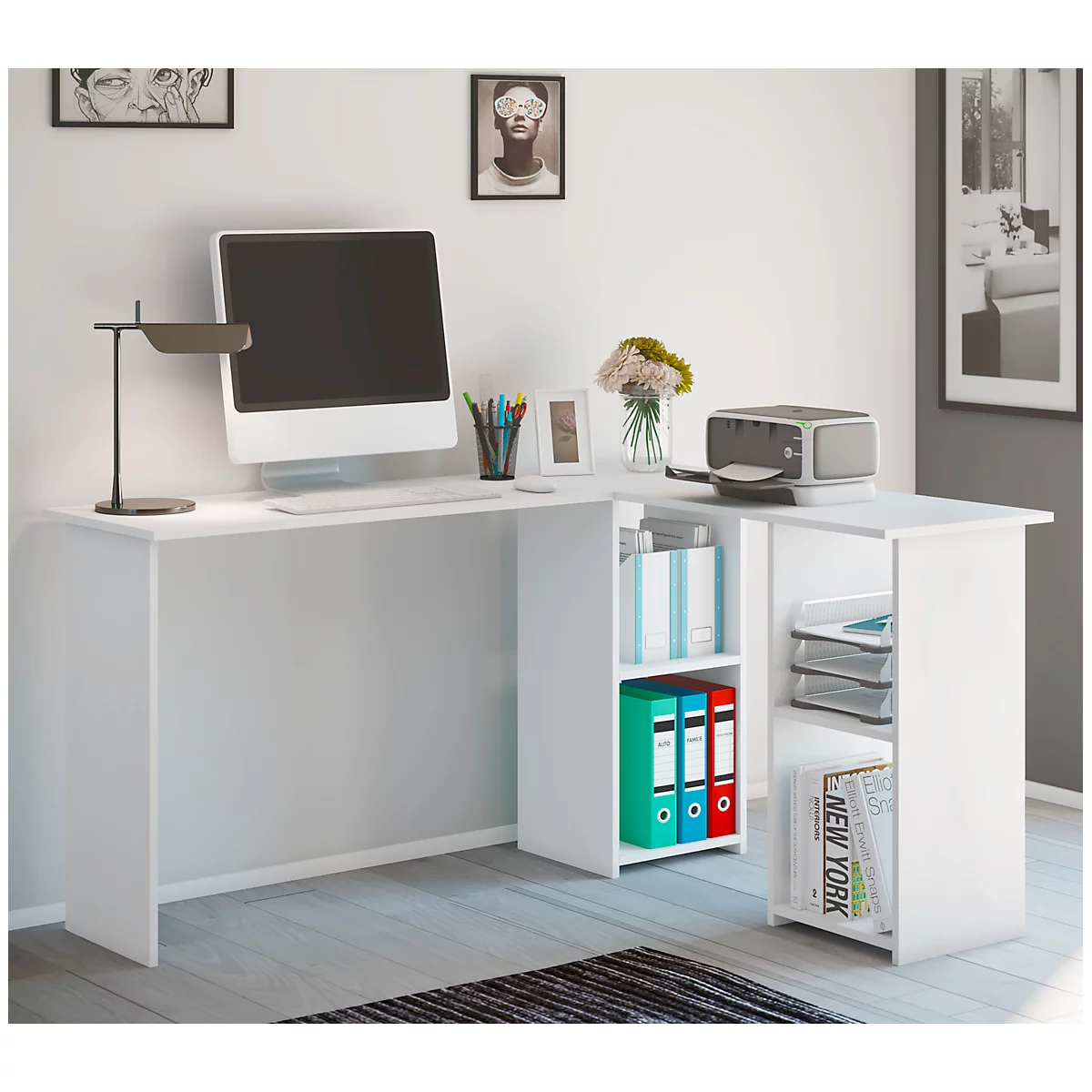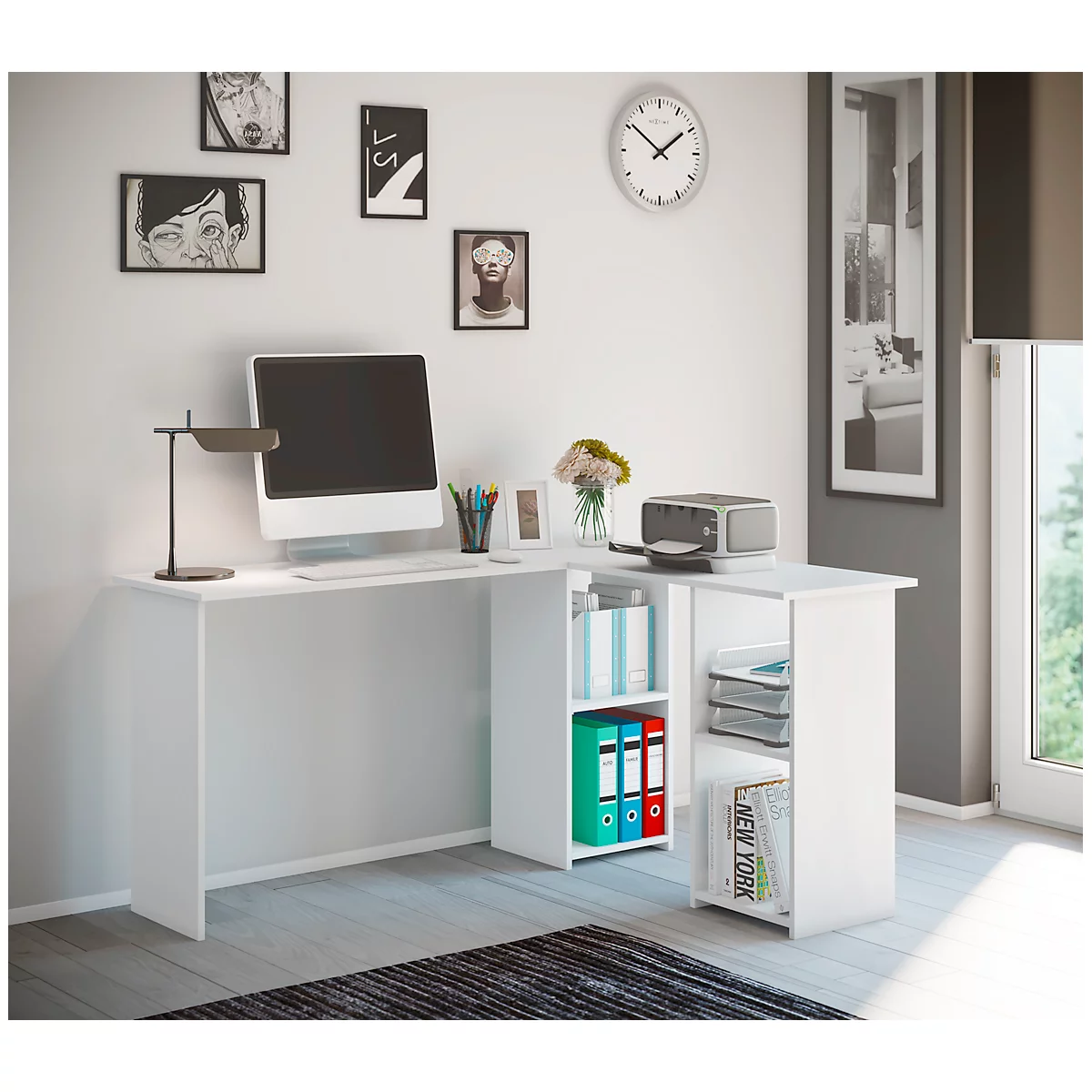 Sie erhalten den Eckschreibtisch wahlweise in schwarzer oder weißer Holzstruktur-Nachbildung.
