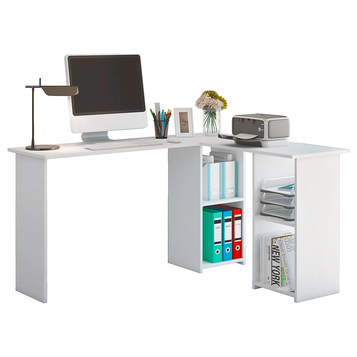 Der Eckschreibtisch mit Wangenfuß besitzt vier große Fächer. Darin lassen sich Ordner, Druckerpapier und viele andere Arbeitsmaterialien unterbringen.