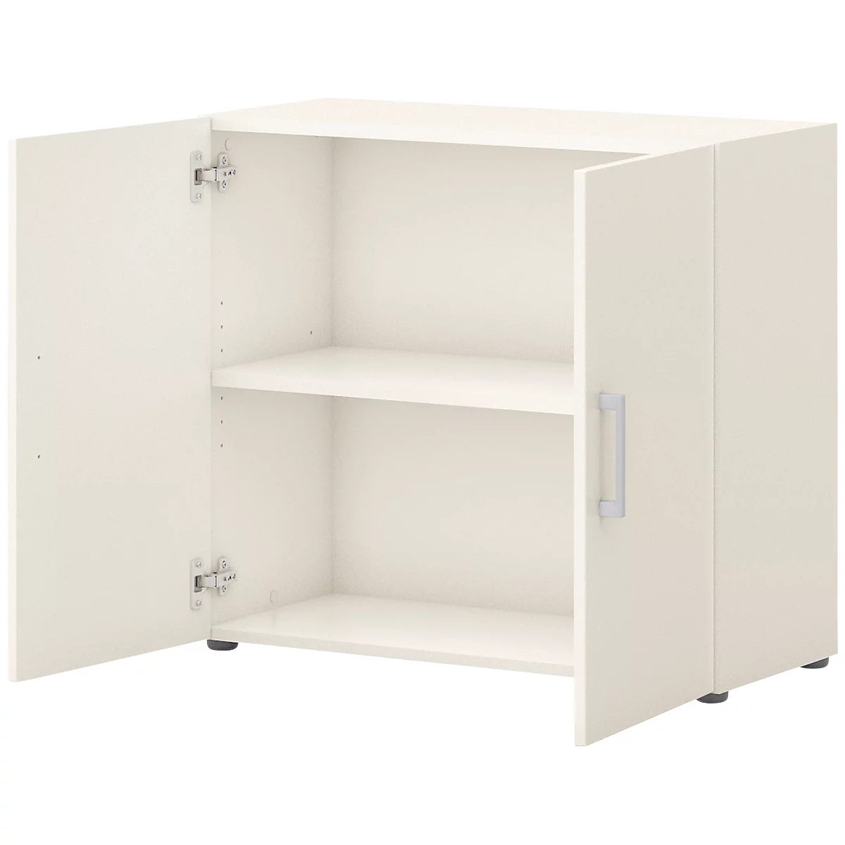 Der Büroschrank verbirgt hinter zwei Türen drei Ordnerhöhen, um Ihnen die Unterbringung vieler Akten zu ermöglichen. Die exklusiven Metalltopfbandscharniere lassen sich geräuschlos in einem weiten Winkel von 110 Grad öffnen und schließen. Dieser platzsparende Ordnungshelfer hat eine Breite von nur 800 mm und ist 340 mm tief sowie 720 bzw. mit 3 OH 1070 mm hoch.