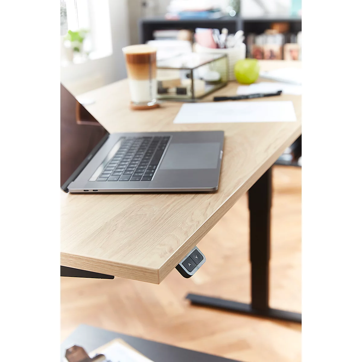 - Sonstige Features: Knieraumblende, geteilte Tischplatte mit integrierter Klappe, 19 mm Plattenstärke