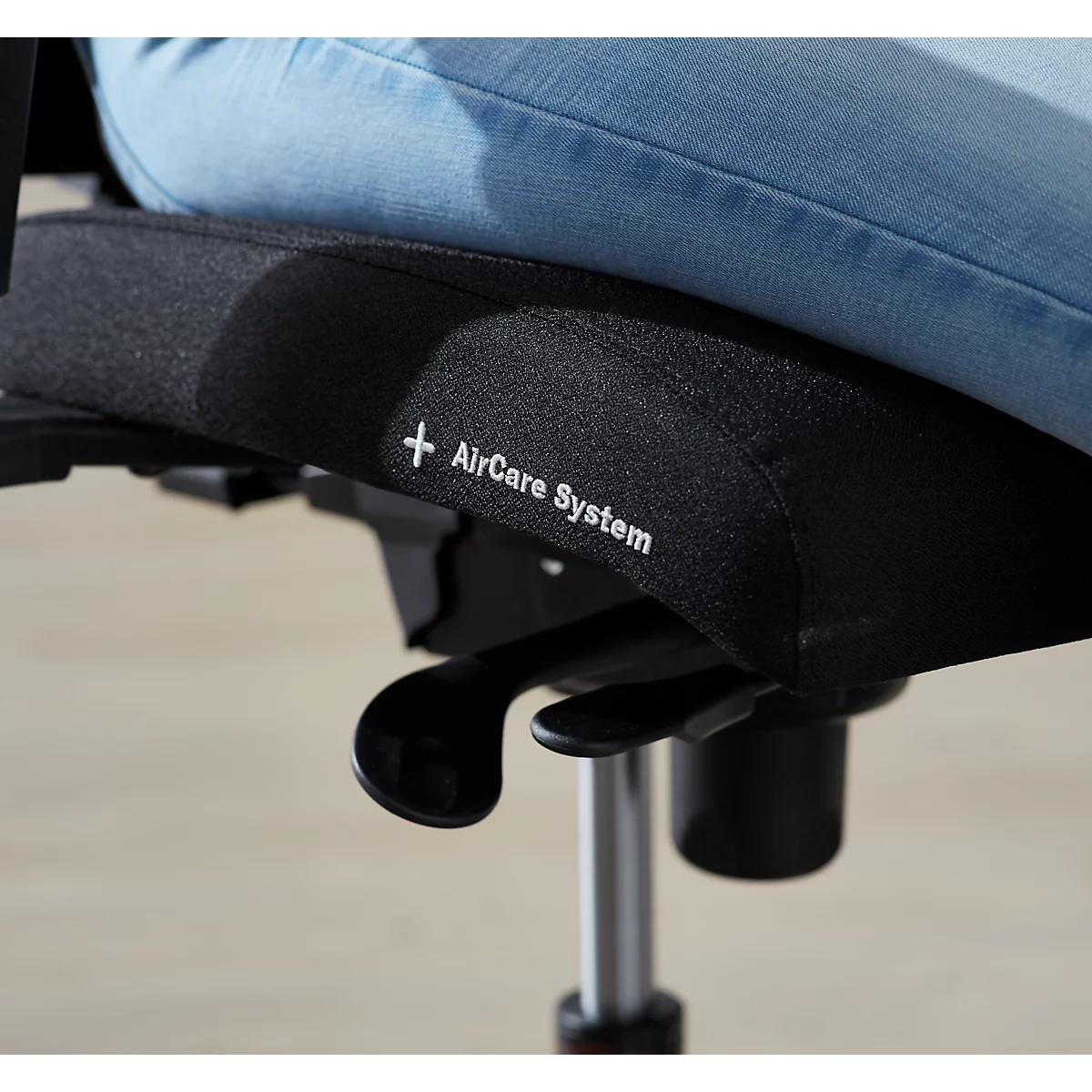 Der bequeme Muldensitz ist auch für Leute, die lange sitzen, eine Wohltat. Sein innovatives AirCareTM System, ein im Sitzpolster integriertes 2-Kammer-Luftkissen, ermöglicht während des Sitzens einen durchgehenden Luftaustausch zwischen beiden Kissen. Durch die Luftverlagerung passt sich der Sitz ideal an Ihre Köperform und Ihr Gewicht an fördert eine dynamische Körperhaltung. Ein individuelles Sitzgefühl, ähnlich wie auf einem Gymnastikball.