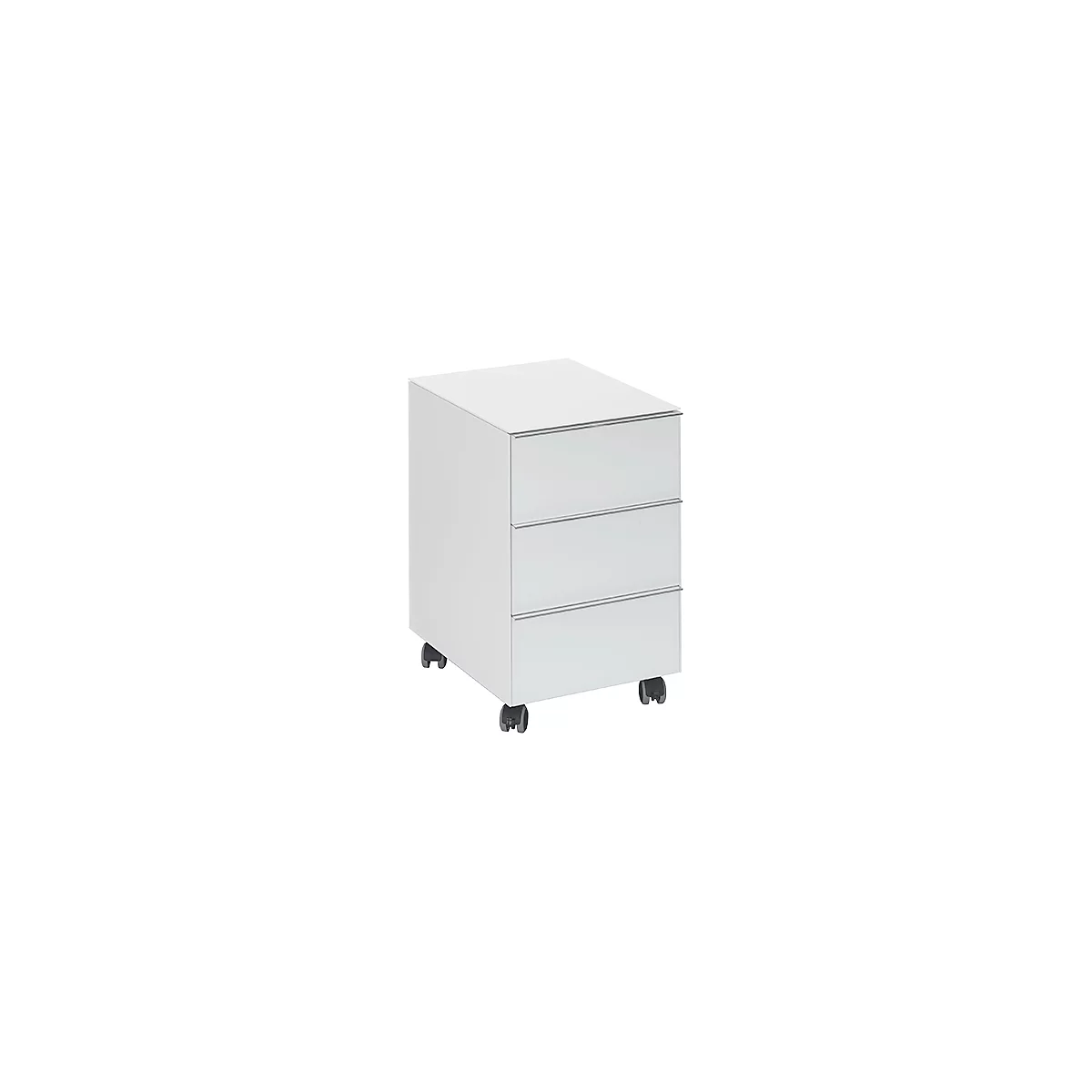 Der Rollcontainer Nizza verfügt über drei Schüben und Metallgriffleisten. Den Rollcontainer Nizza punktet mit Korpus und Fronten mit ESG-Sicherheitsglas.
