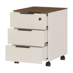 Rollcontainer Ancona, 3 Schubkästen (1 Abschließbar), Vier Laufrollen, Kaschmir/Nussbaum
