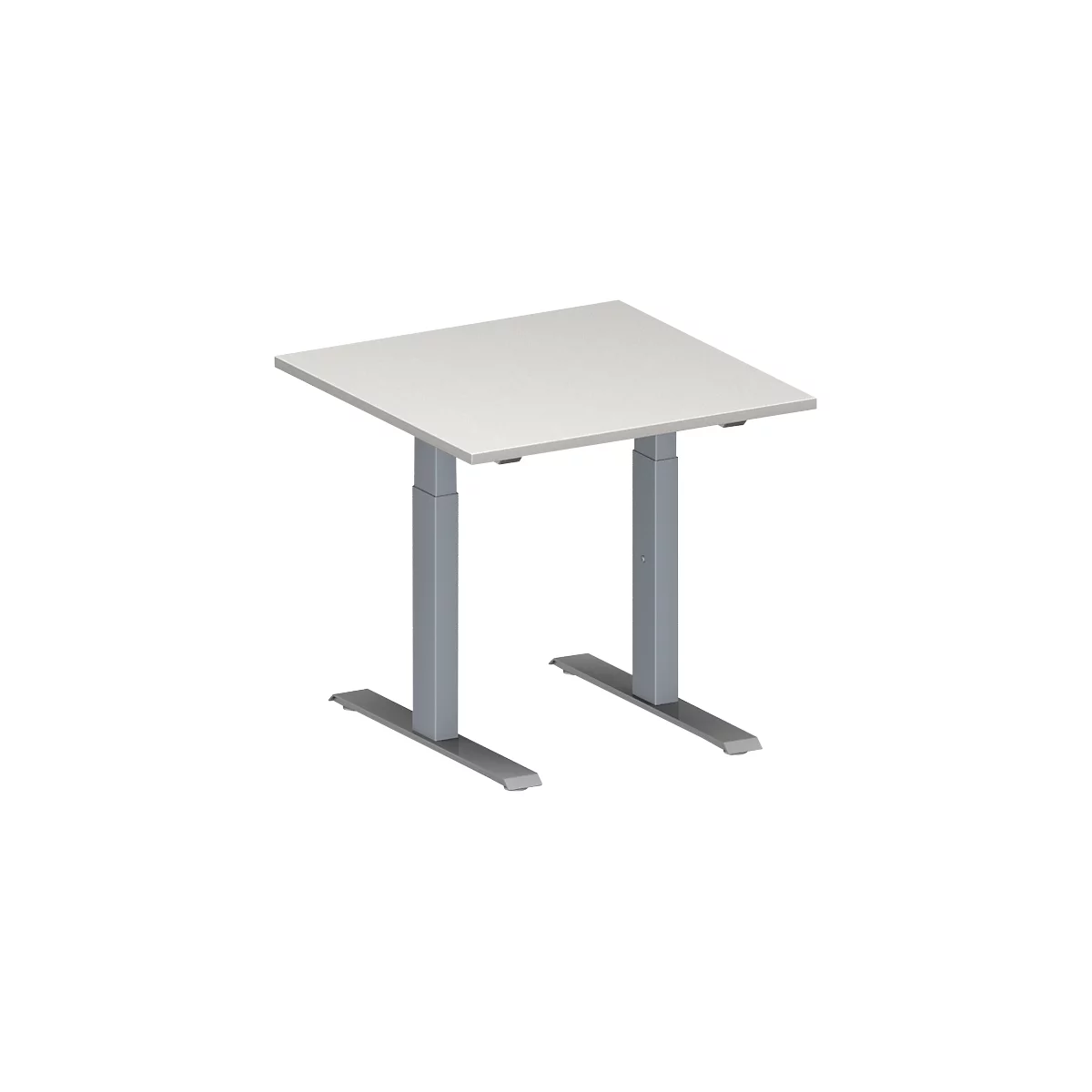 Für Tatkräftige kommt es auf eine solide Grundlage an. Eine solche ist der 800 x 800 (B x T) mm große Konferenztisch MODENA FLEX, der sich vor allem im Großraumbüro clever durch Modernität und Variabilität auszeichnet. Die quadratische Tischfläche bringt gleich mehrere Pluspunkte mit sich: sie ist platzsparend, flexibel und optimal als Arbeitsplatz-Erweiterung einsetzbar. Farben rufen unterschiedliche Assoziationen und Empfindungen hervor. Das Dekor in Lichtgrau ist eher neutral und unauffällig, sodass andere Farbtöne mehr zur Geltung kommen dürfen. Getragen wird die Tischplatte von einem robusten T-Fuß Rechteckrohr-Gestell aus pulverbeschichtetem Stahl, das in Weißaluminium RAL 9006 das Tischdesign abrundet und mit Gleiter ausgestattet ist. Mit Regulierungsschrauben in den Füßen gelingt das standfeste Ausrichten des Gestells im Handumdrehen. Das Modell ist per Rohr-in-Rohr-Technik im 20-mm-Raster innerhalb von 650 bis 850 mm höheneinstellbar. Der Tisch lässt sich dank des einstellbaren Gestells spielend einfach in die gewünschte Höhe bringen, sodass auch größere Personen an ihm bequem im Sitzen arbeiten können.
