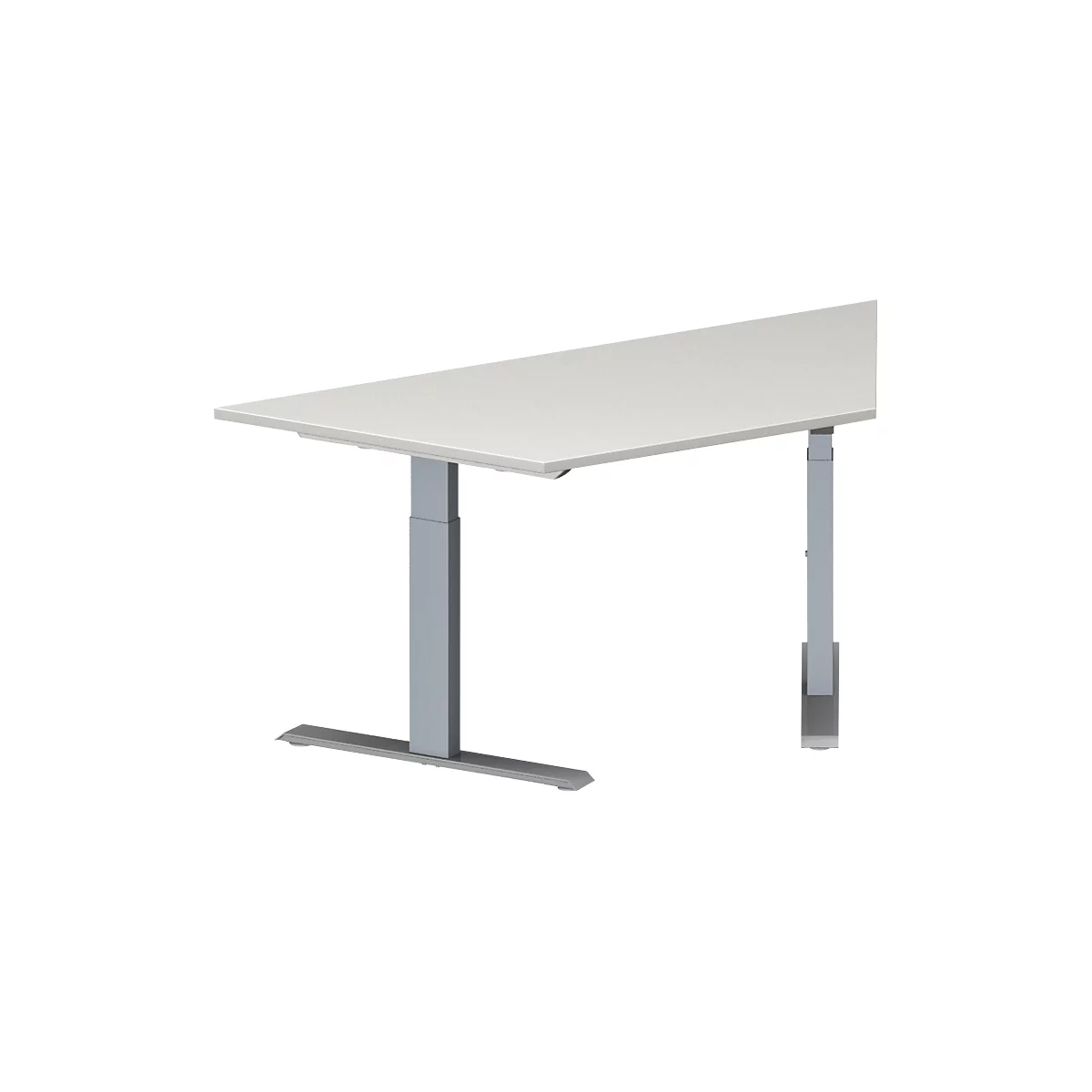 Schäfer Shop Genius Konferenztisch MODENA FLEX, Trapez, T-Fuß Rechteckrohr, B 1600 X T 800 X H 650-850 Mm, Lichtgrau/weißaluminium RAL 9006