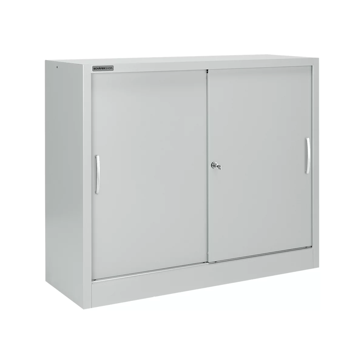 Der robuste Schiebetürenschrank MS iCONOMY ist aus hochwertigem Qualitätsfeinblech. Durch die widerstandsfähige Pulverbeschichtung ist der Schiebetürenschrank MS iCONOMY besonders abrieb- und stoßfest. Von höchster Qualität sind auch die rollengelagerten, leichtgängigen Schiebetüren. Diese sind mit Metall-Bügelgriffen ausgestattet und können dank des Wechselzylinderschlosses auch abgeschlossen werden. Insgesamt bietet der Schiebetürenschrank MS iCONOMY auf einer Breite von 1200 mm drei Ordnerhöhen mit einer Gesamthöhe von 1215 mm inklusive Sockel. Die Fachböden des Schiebetürenschranks MS iCONOMY haben eine Traglast von je 50 Kilo. Sie können jeweils im Raster von 25 mm in der Höhe verstellt werden. Der Schiebetürenschrank MS iCONOMY ist frei im Raum aufstellbar und wird aufgebaut geliefert. Bitte prüfen Sie deshalb den Transportweg zum Aufstellungsort. Made by SSI Schäfer geben wir Ihnen auf diesen Schiebetürenschrank MS iCONOMY zehn Jahre Garantie.