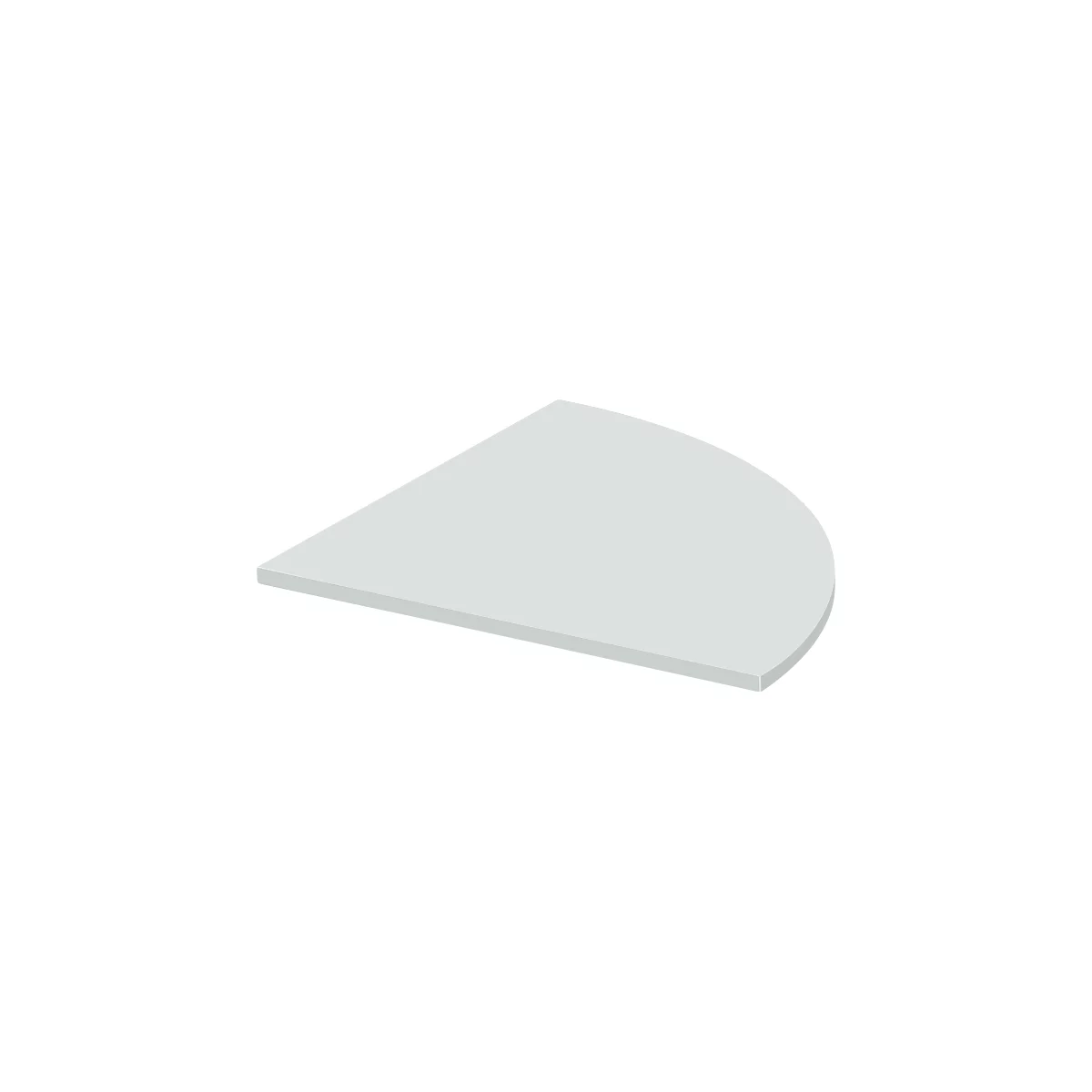 Die Verkettungsplatte besitzt eine abgerundete Viertelkreis-Form mit zwei 800 mm breiten Schenkeln und einen Stützfuß.
