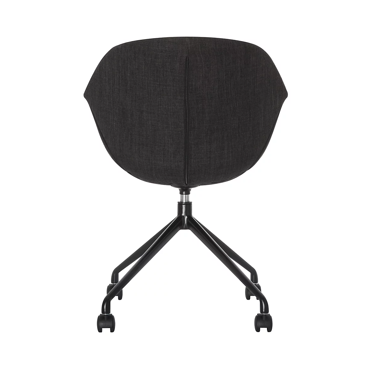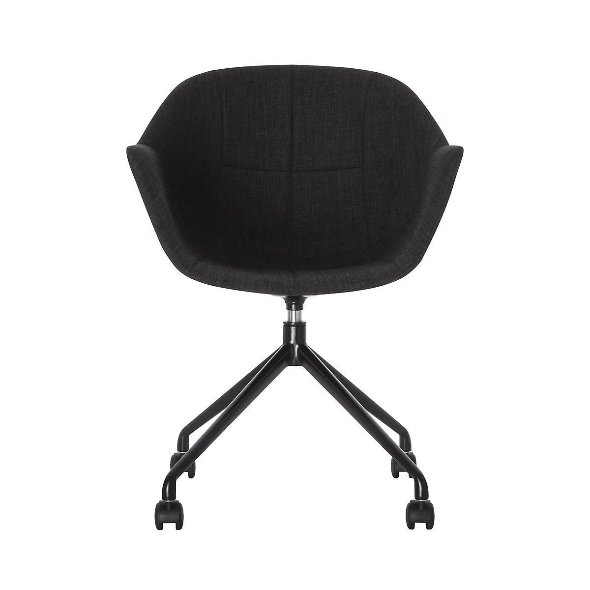 Wählen sie zwischen einer Variante mit grauem Stoffbezug der Sitzschale und Rückenfläche sowie einem weißen Gestell oder einer Variante mit anthrazitfarbenem Stoffbezug und einem schwarzen Gestell. Dieses ist als Spinnenfuß ausgeführt und wurde aus stabilem, lackiertem Stahlrohr mit Epoxybeschichtung gefertigt.