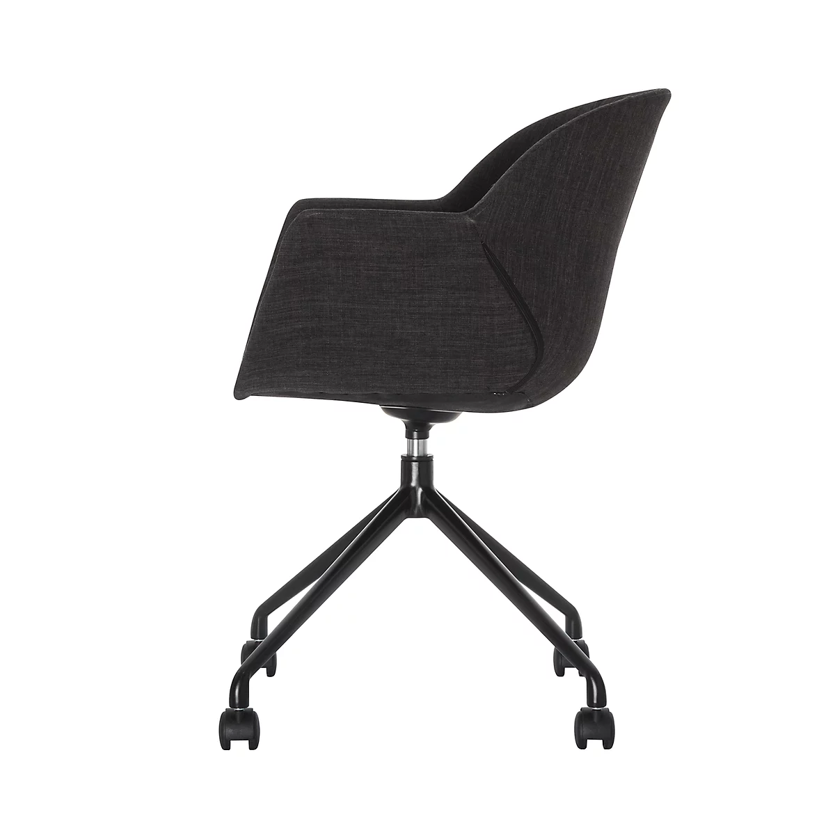 Die Sitzschale und die Rückenfläche bestehen aus Polypropylen und sind mit einem Stoffbezug (100 % Polyester) bezogen. Die Füllung aus Polyurethanschaum (35 kg/m3) sorgt für ein bequemes Sitzerlebnis. Die Sitzhöhe beträgt 460 mm.