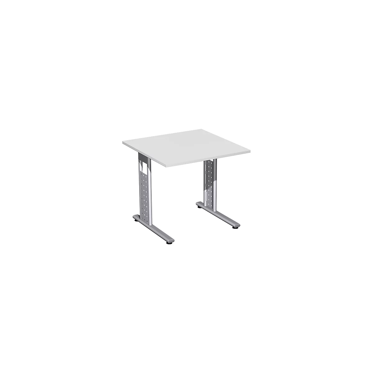 Die quadratische Schreibtischplatte ist 25 mm stark und beidseitig melaminharzbeschichtet. Ihr dezentes Dekor in wahlweise hellen Farben oder Holz-Designs findet sich auch in der 3 mm ABS-Umleimung wieder, die die Kanten schützt.