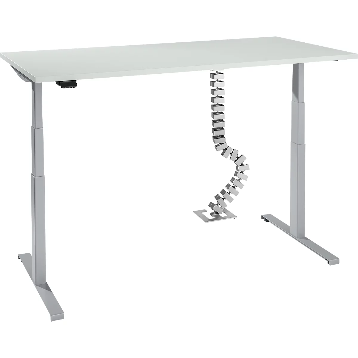 Sicherheit am Arbeitsplatz ist immer präsent: Der Kollisionsschutz stoppt den Tisch automatisch, sobald dieser beim Hoch- oder Runterfahren irgendwo anstößt. Verknotete oder ungeordnete Kabel, die im Weg herumhängen, waren gestern! Verstecken Sie Kabel in der diskreten Kabelführung und führen Sie diese systematisch durch die Kabelschlange zu Steckdosen und Anschlüssen bspw. im Boden.