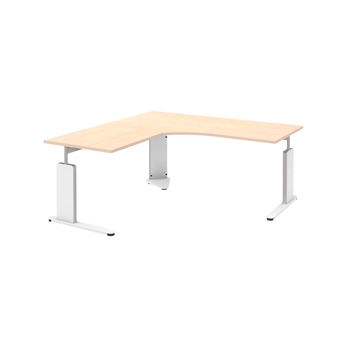 Dank flexiblem und stabilem C-Fußgestell komplett aus Metall mit Höhenverstellung in Rastersprüngen von 680 bis 820 mm passt sich der Schreibtisch jedem Nutzer an und sorgt so für die nötige ergonomisch-orientierte Ausstattung.