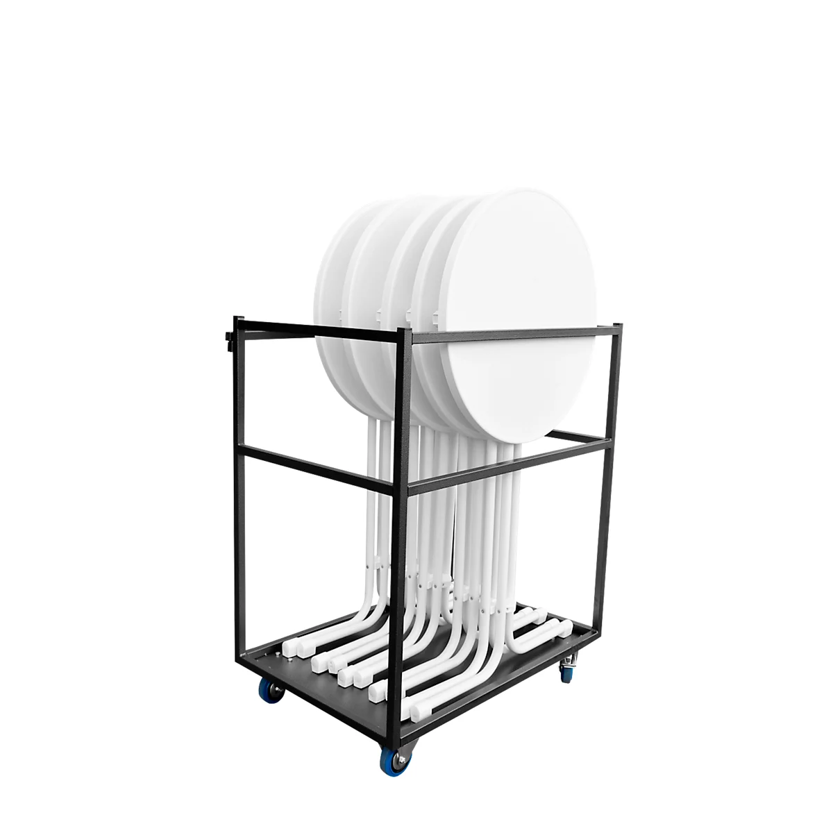 Dieses Setangebot besteht aus einem Transportwagen mit wahlweise fünf oder 10 klappbaren Stehtischen in Weiß. Mit dem Setangebot bringen Sie Tische für Feiern oder Konferenzen mühelos an den gewünschten Ort.