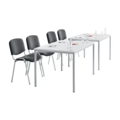 Stapelstuhl Styl, Mit Armlehnen, Lederoptik, Fangograu, Stapelbar Bis Zu 6 Stück