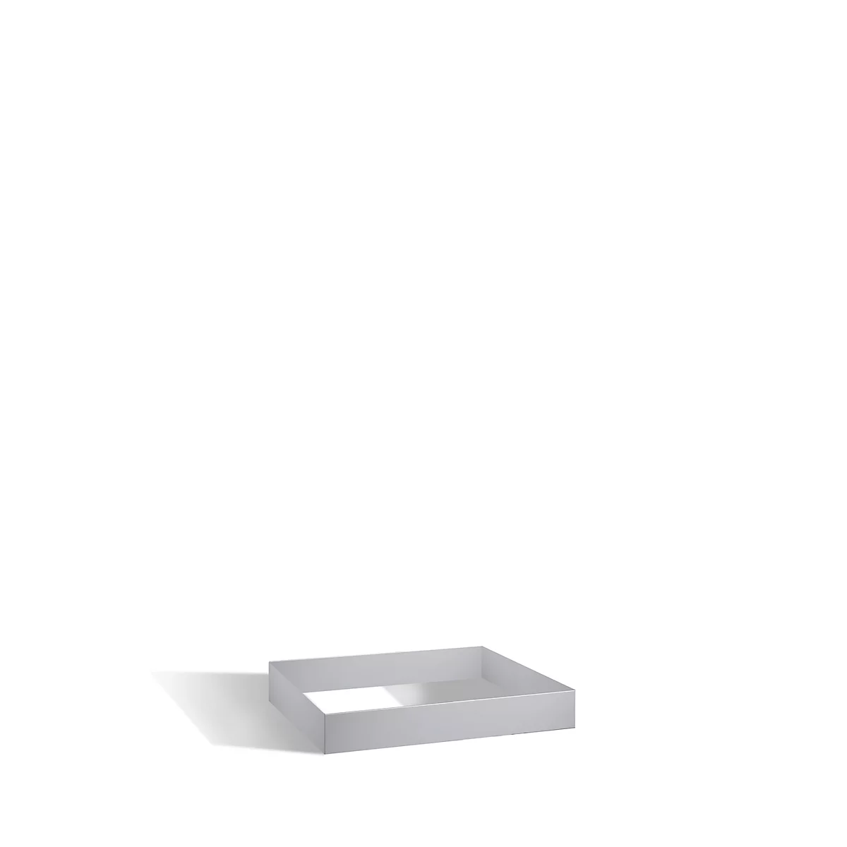 Als Ergänzungsteil für den Planschrank greift dieser Sockel allseitig in den Schrankboden ein. und ist vorne um etwa 15 mm zurückgesetzt.