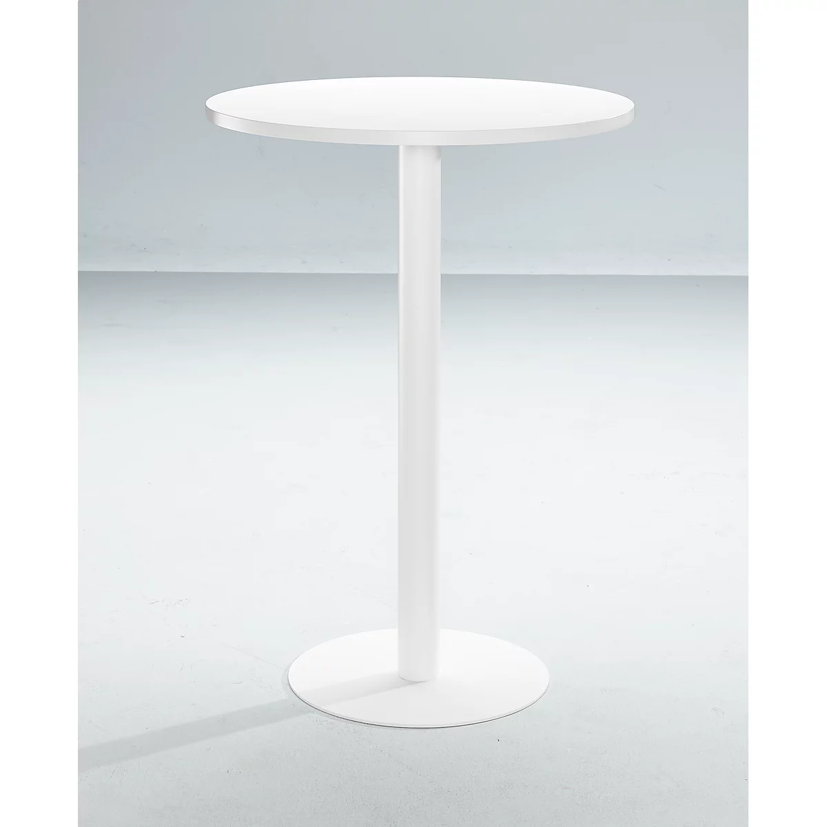 Der Stehtisch steht auf einem Säulenfuß-Gestell aus kratzfestem Stahl in weißer Epoxidpulverbeschichtung. Die solide Konstruktion verleiht dem Tisch eine sehr gute Standfestigkeit. Die zusätzlichen Bodenschoner unter dem Tischfuß schützen auch sensible Böden wie beispielsweise Parkett vor Kratzspuren.