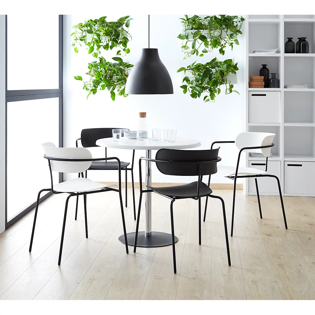 Wer einen bequemen Stuhl für den Innen- oder Außenbereich in einem modernen Design sucht, findet mit dem Stuhl BISTRO das passende Modell. Das Gestell besteht aus einem robusten Stahlrohr und ist schwarz lackiert. Das macht den Stuhl unempfindlich gegen Verschmutzungen. Der Sitz und die Rückenlehne sind aus Polypropylen gefertigt. Dieses Material ist sehr pflegeleicht und mühelos abwaschbar.