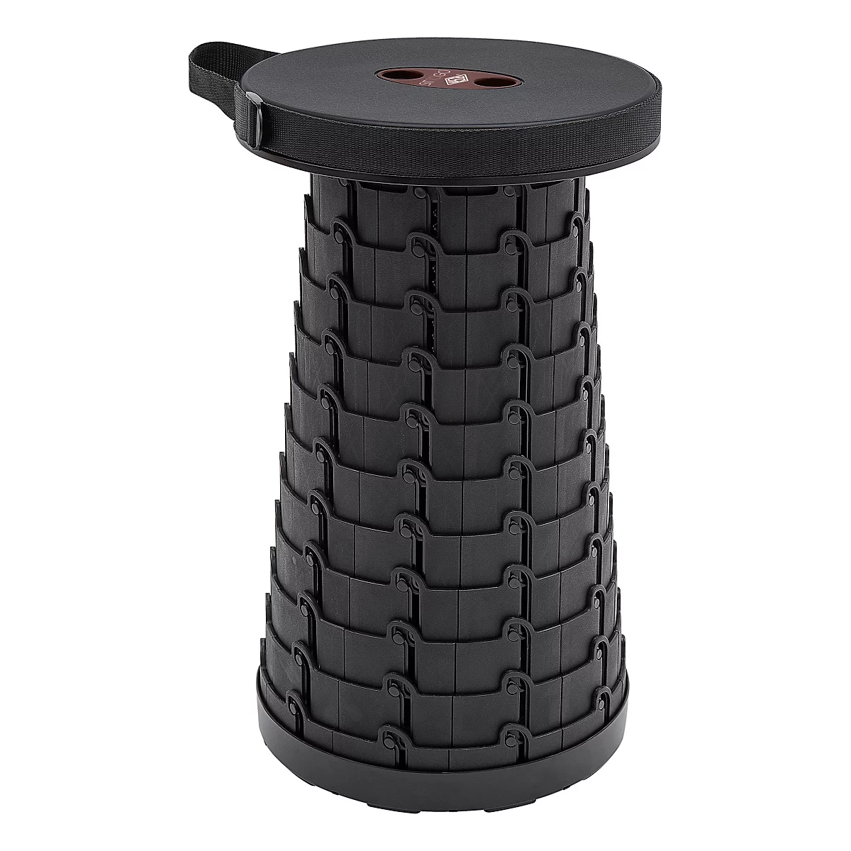 Gefertigt aus stabilem Kunststoff und ausgelegt auf eine Belastung mit bis zu 130 kg, besitzt der Hocker einen Durchmesser von 255 mm und ist mit cleverer Teleskopmechanik ausgestattet. Durch einfaches Ziehen und Drehen kann seine Sitzhöhe beliebig auf bis zu 440 mm eingestellt werden.
