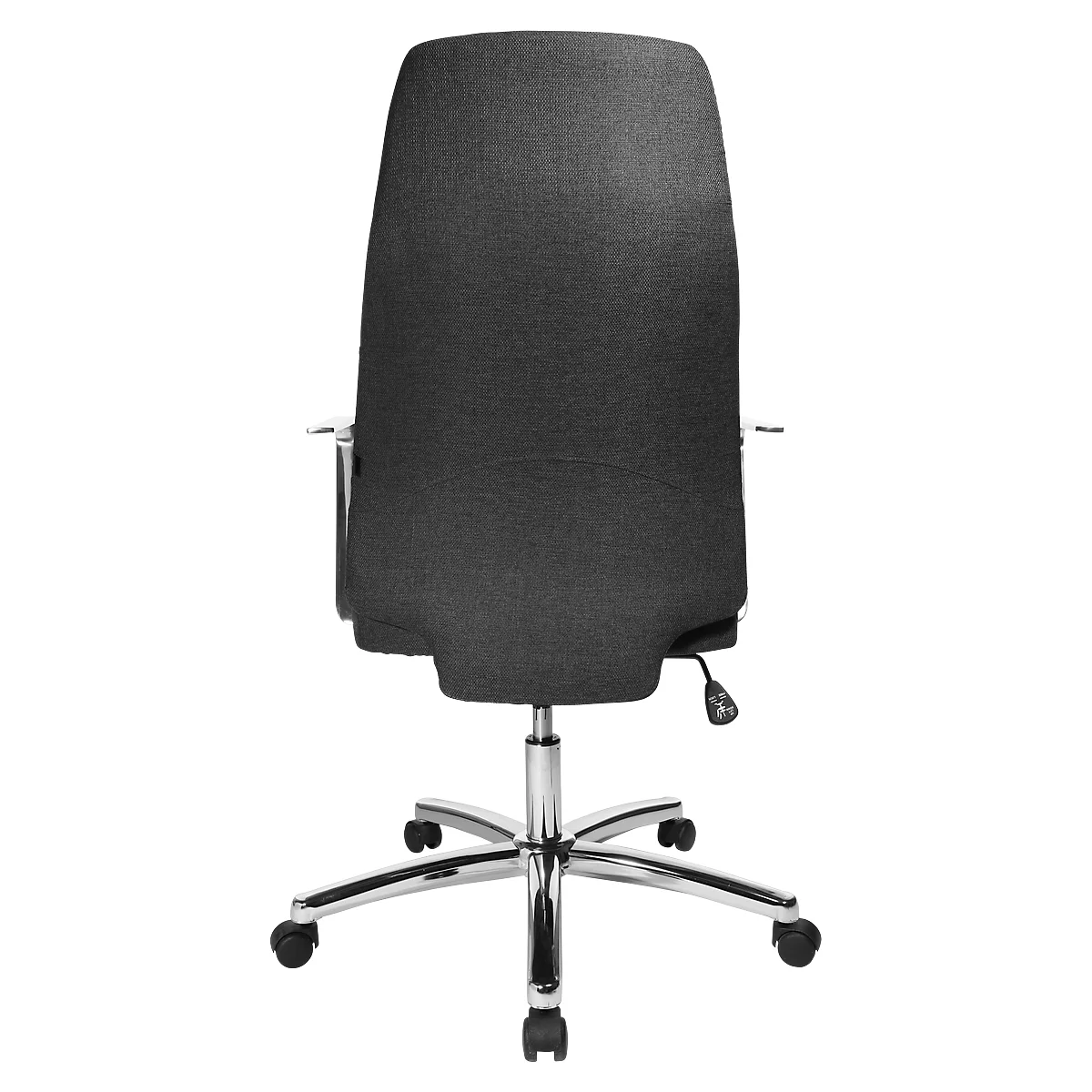Für eine Entlastung des Nackens und der Schultern sorgen die festen Armlehnen, auf denen Ihre Arme bei Schreibtischarbeiten bequem aufliegen. Die hochwertige Polsterung ist angenehm und robust. Der Stoffbezug vermittelt bei jeder Temperatur ein angenehmes Sitzgefühl, ist leicht zu reinigen und strapazierfähig. Durch die Verwendung von Doppelrollen eignet sich der Stuhl für weiche Untergründe wie langflorige Teppichböden oder Läufer.